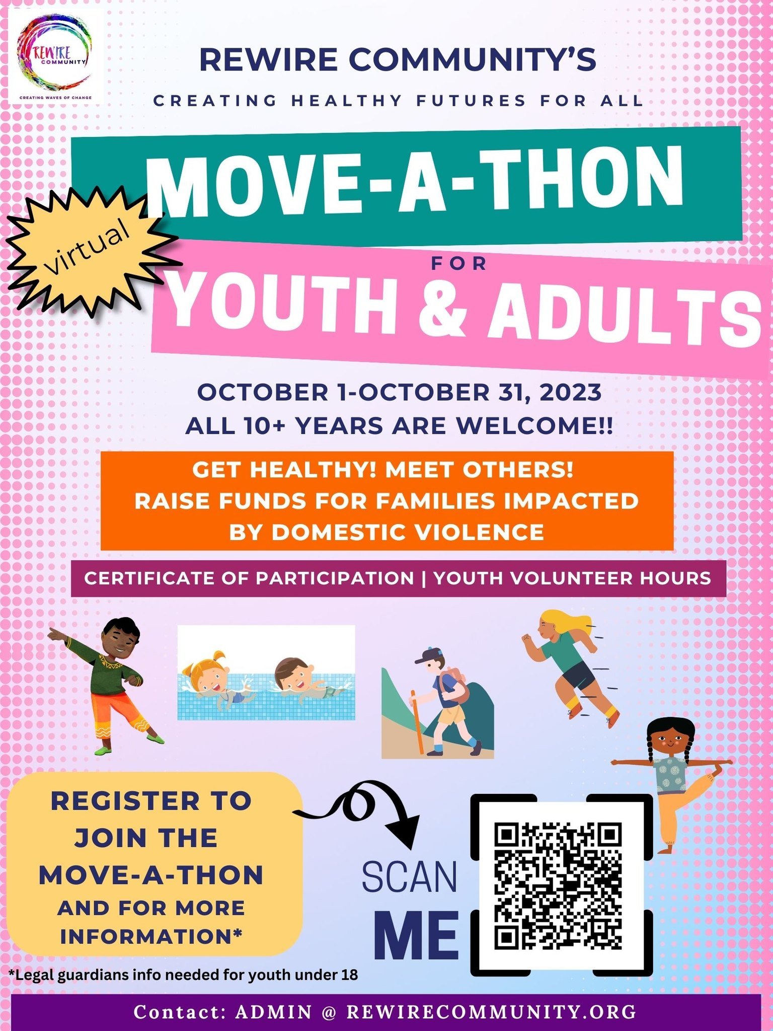 In October, Rewire Community welcomed all to a virtual fundraiser- our very first Move-A-Thon! We invited all to swim, dance, run, walk, bike…whatever movement one chose, to come together to raise awareness and funds for families impacted by domestic violence and assault. 𝐖𝐞 𝐚𝐫𝐞 𝐞𝐱𝐜𝐢𝐭𝐞𝐝 𝐚𝐧𝐝 𝐡𝐮𝐦𝐛𝐥𝐞𝐝 𝐭𝐨 𝐬𝐡𝐚𝐫𝐞 𝐭𝐡𝐚𝐭 $𝟔,𝟑𝟎𝟎 was 𝐫𝐚𝐢𝐬𝐞𝐝 𝐢𝐧 𝐭𝐡𝐢𝐬 𝐞𝐟𝐟𝐨𝐫𝐭! With the funds raised, Rewire Community provided families with relief care-kits and monetary support to help with safe shelter, utilities such as water and gas, essentials such as food, medicine and clothes, and legal and therapy support.