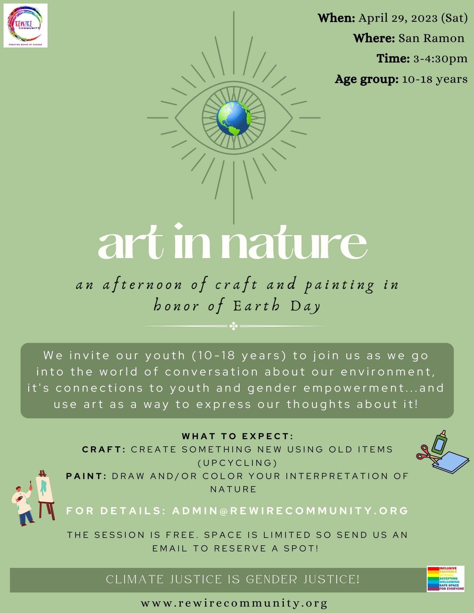 Our Art in Nature session was an afternoon with the youth in our community, ages 10-18 years, talking about climate justice and how each person is a change agent! Age never a bar.